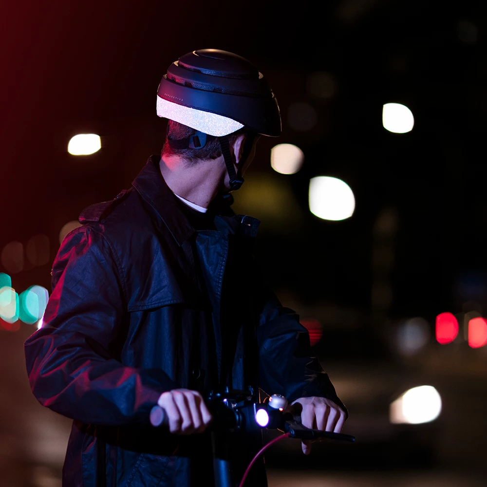 Closca Helmet Reflective : le premier casque vélo pliant. La partie arrière du casque est reflective pour un gain de sécurité.